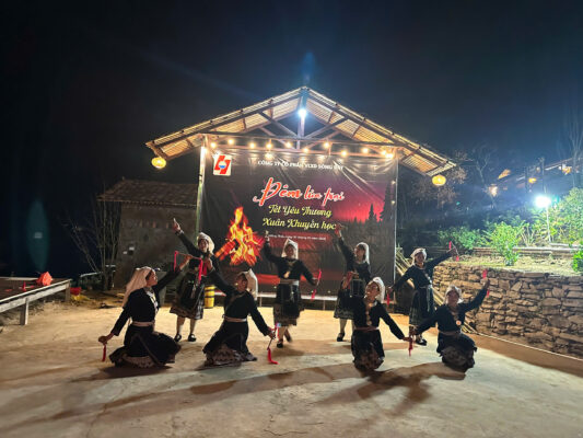 Buổi tối cùng ngày, đoàn tổ chức chương trình đốt lửa trại và giao lưu văn nghệ tại Farmstay Lê. Trong không khí ấm áp giữa núi rừng, các thành viên đã cùng nhau ca hát, chia sẻ và gắn kết tinh thần tập thể.